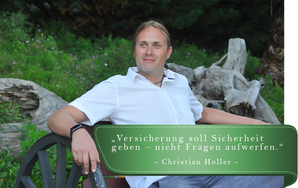 Ich bin Christian Holler – Ihr unabhängiger Versicherungsmakler mit Sitz in Passau. Seit vielen Jahren begleite ich Menschen dabei, die richtigen Entscheidungen rund um ihren Versicherungsschutz und ihre Vorsorge zu treffen. Mein Ziel ist es, komplexe Themen verständlich zu machen und individuelle, nachhaltige Lösungen zu entwickeln – immer im Sinne meiner Kundinnen und Kunden.
